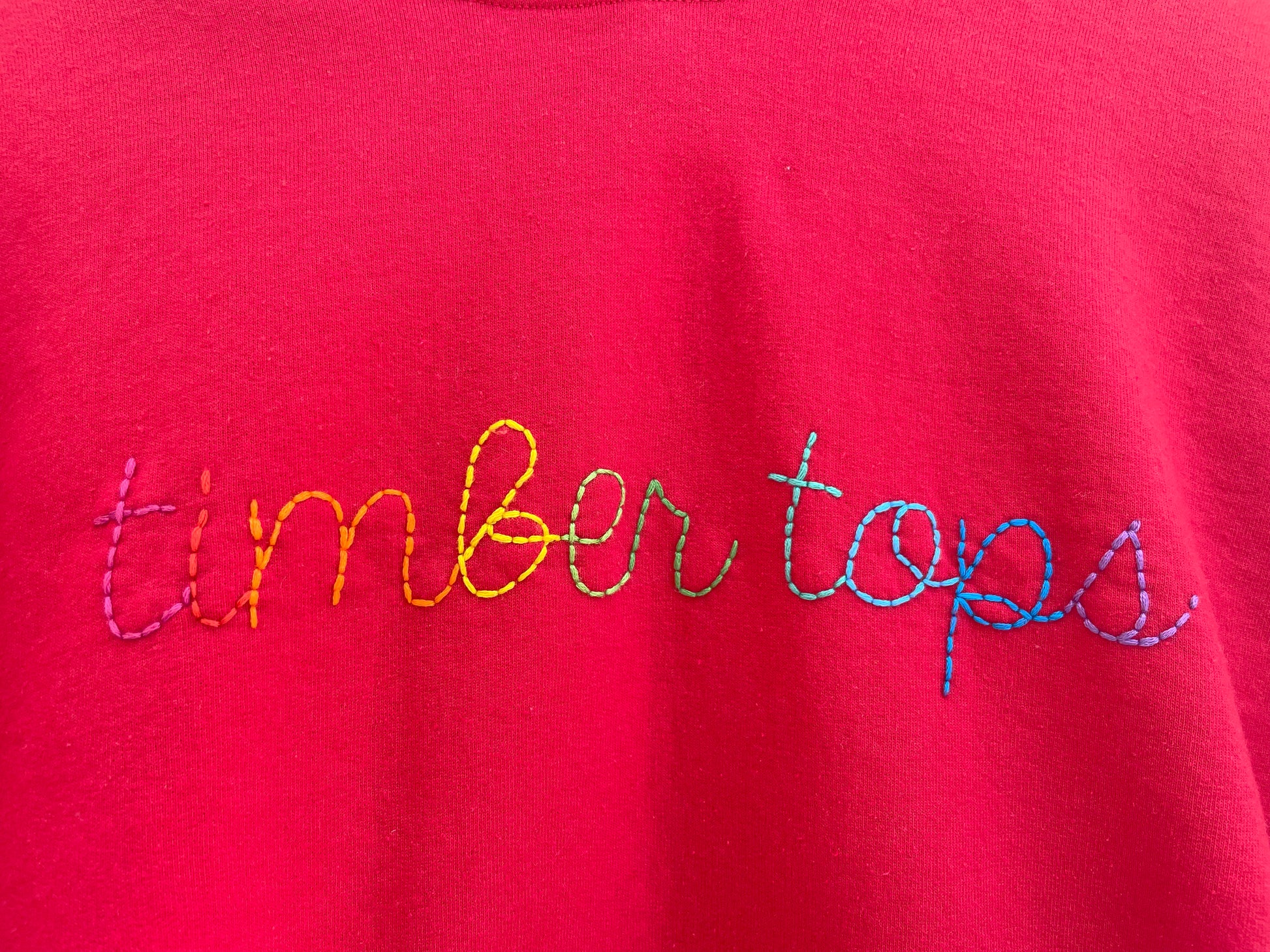 Show your favorite Summer home some love with a custom hand embroidered sweatshirt. Choose colors (rainbow, solid or ombre) and Camp Name.